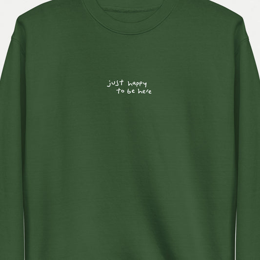 Just Happy To Be Here | Crewneck Sweatshirt - Forest Green